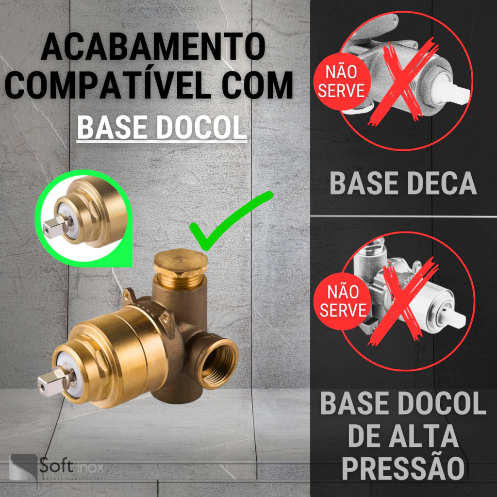 -Compatível com Registros Monocomando 3/4 ́ ́ de Chuveiro ou Banheira Alta Vazão e Baixa Pressão Docol;