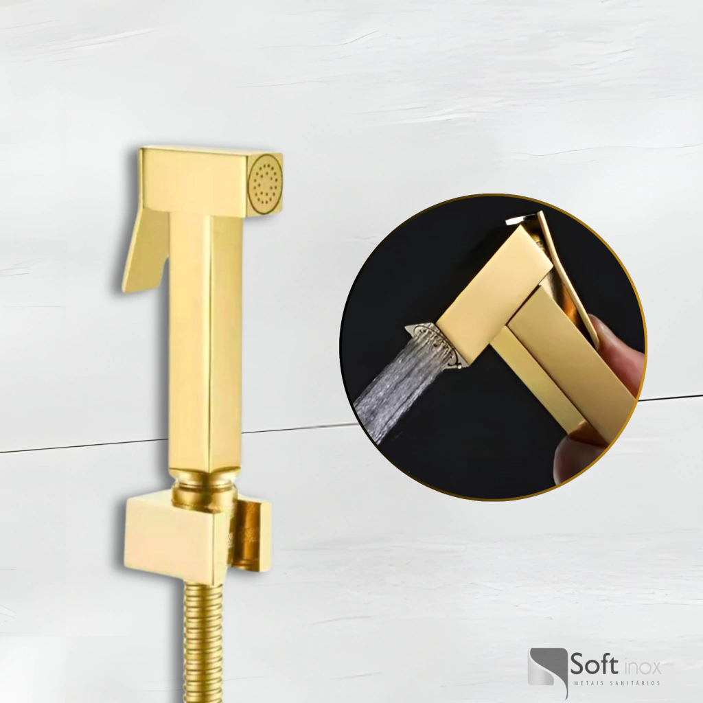 TAGS: Ducha Higiênica, Banheiro, Quadrada, Acabamento Dourado, Gold Metal, Design Sofisticado, Soft Inox, Elegância, Higiene Pessoal, Modernidade, Acessório de Banheiro, Qualidade Premium, Instalação Fácil, Estilo Contemporâneo, Luxo, Resistência, Toque de Glamour, Acabamento de Alta Durabilidade, Estética Premium ,Conforto no Uso, Acessório de Banheiro Premium, Banheiro Moderno, Ducha de Limpeza Pessoal, Requinte no Design