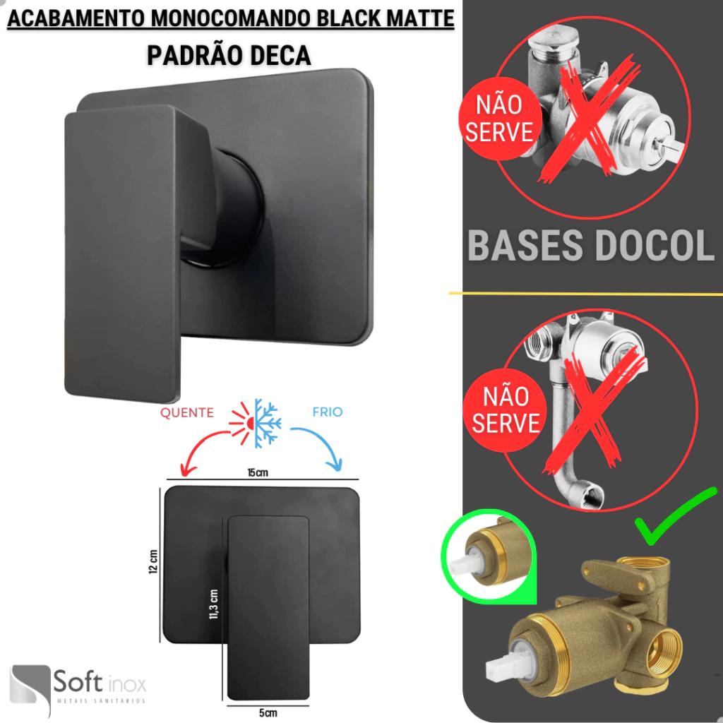 Elegância e compatibilidade! Este acabamento quadrado, com design moderno, é ideal para sistemas padrão Deca.