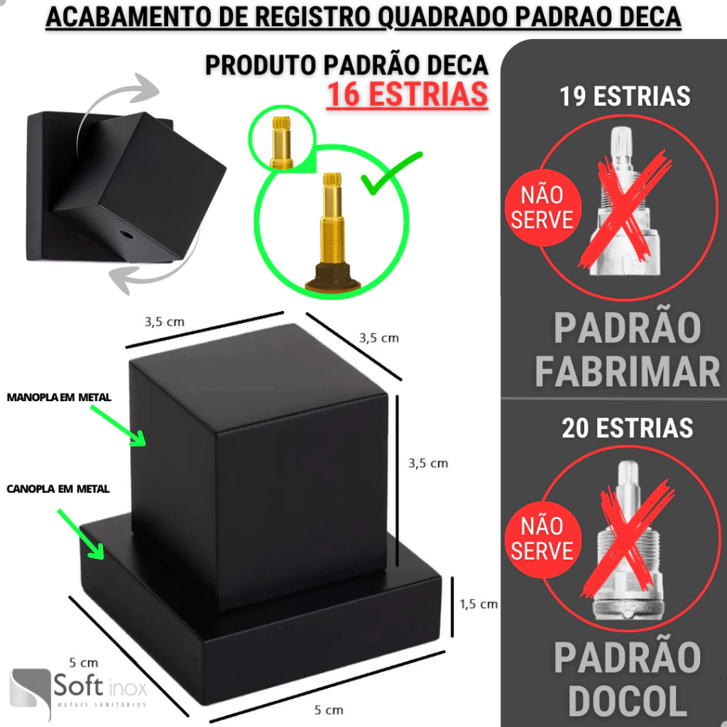 Elegância e compatibilidade! Este acabamento quadrado, com design moderno, é ideal para sistemas padrão Deca.