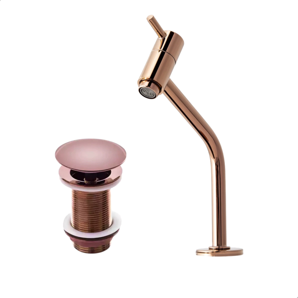 TAGS: Torneira, Lavatório, Bica Baixa, 1/4 de Volta, Rose, Rose Gold, Sofisticação, Durabilidade, Economia de Água, Válvula, Sistema Click, Dourado, 1.1/4, Drenagem, Cubas, Pias, Tanque, Metal, Durável, Resistente