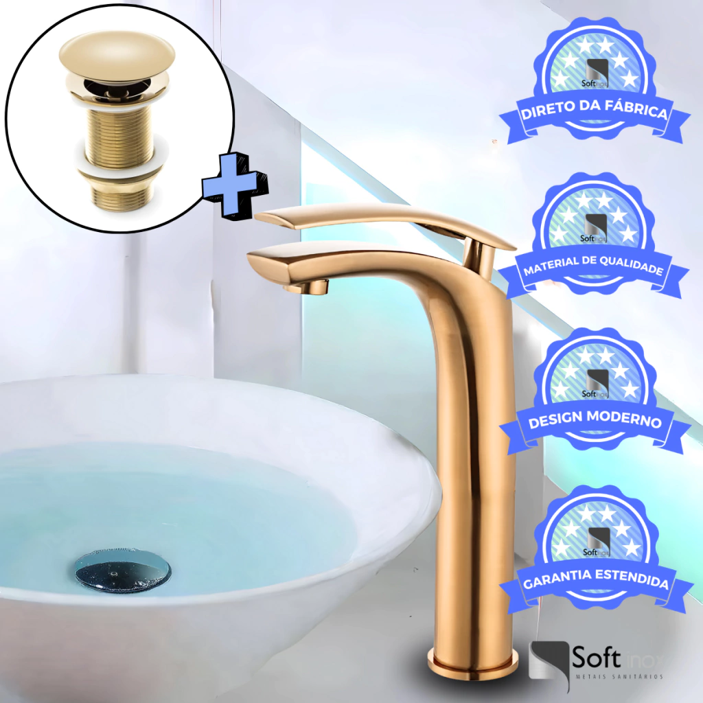 Tags: Torneira Monocomando, Válvula Click Luxo, Dourado, Gold, Lavatório, Banheiro, Bica Alta, Inox, Sistema Click, Sofisticação, Funcionalidade, Design Elegante, Acabamento Premium, Durabilidade, Fácil Instalação, Praticidade, 1.1/4, Drenagem, Cubas, Pias, Tanque, Metal, Durável, Resistente, Torneira, Torneira Gourmet, Soft Inox, Esmeralda , Torneira Bancada, Click Up.