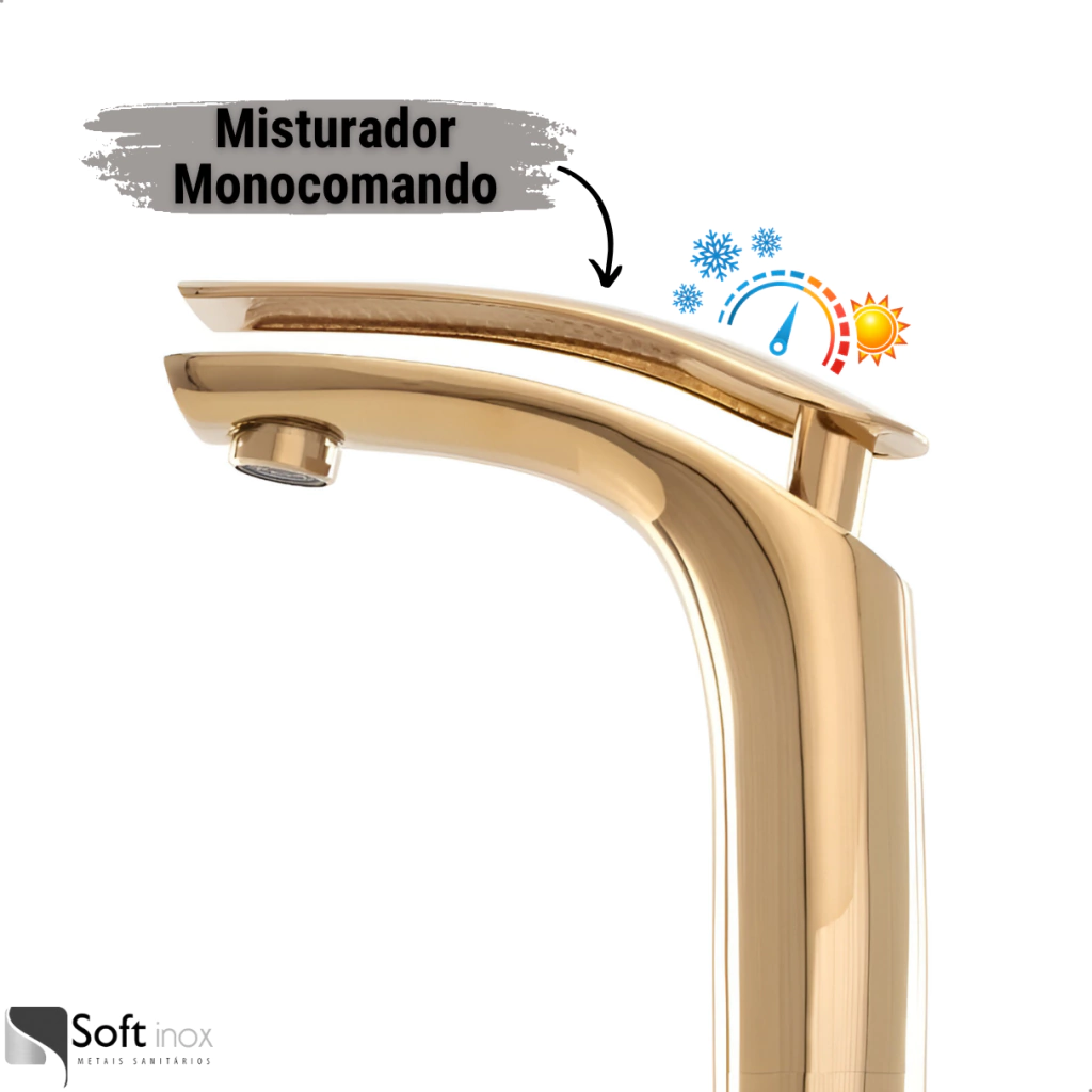 Adicione sofisticação e funcionalidade ao seu banheiro com o Kit de Torneira Monocomando Alta e Válvula de Escoamento Click Luxo (Gold). Este conjunto combina o design elegante da torneira monocomando com a praticidade da válvula de escoamento, oferecendo uma solução completa para lavabos e banheiros modernos. A torneira possui acabamento em Gold, misturando requinte e durabilidade com o seu cartucho cerâmico de alta qualidade e controle preciso de vazão e temperatura. Já a válvula click em inox Gold proporciona um toque luxuoso e praticidade com seu sistema inteligente de abertura e fechamento.