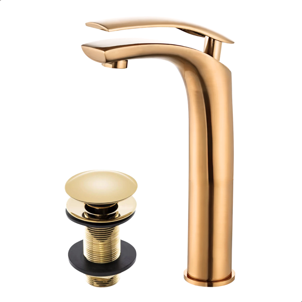 Adicione sofisticação e funcionalidade ao seu banheiro com o Kit de Torneira Monocomando Alta e Válvula de Escoamento Click Luxo (Gold). Este conjunto combina o design elegante da torneira monocomando com a praticidade da válvula de escoamento, oferecendo uma solução completa para lavabos e banheiros modernos. A torneira possui acabamento em Gold, misturando requinte e durabilidade com o seu cartucho cerâmico de alta qualidade e controle preciso de vazão e temperatura. Já a válvula click em inox Gold proporciona um toque luxuoso e praticidade com seu sistema inteligente de abertura e fechamento.
