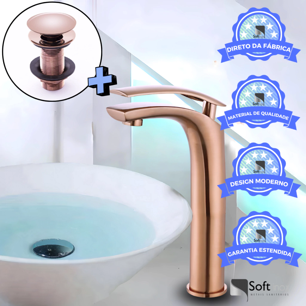 Tags: Torneira Monocomando, Válvula Click Luxo, Rose, Rosa, Lavatório, Banheiro, Bica Alta, Inox, Sistema Click, Sofisticação, Funcionalidade, Design Elegante, Acabamento Premium, Durabilidade, Fácil Instalação, Praticidade, 7/8, Drenagem, Cubas, Pias, Tanque, Metal, Durável, Resistente, Torneira, Torneira Gourmet, Soft Inox, Esmeralda , Torneira Bancada, Click Up.