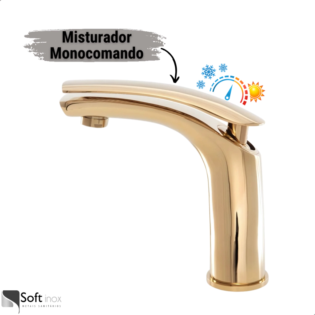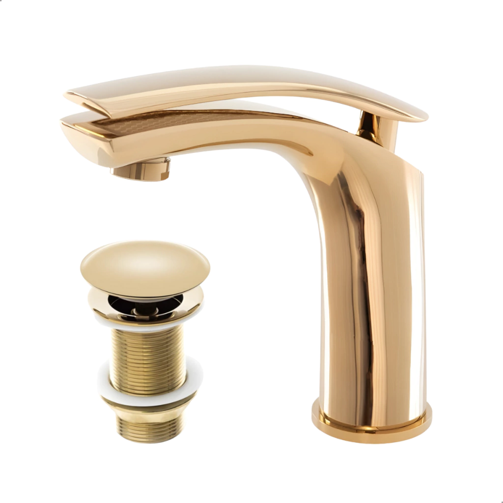 Adicione sofisticação e funcionalidade ao seu banheiro com o Kit de Torneira Monocomando Baixa e Válvula de Escoamento Click Luxo (Gold). Este conjunto combina o design elegante da torneira monocomando com a praticidade da válvula de escoamento, oferecendo uma solução completa para lavabos e banheiros modernos. A torneira possui acabamento em Gold, misturando requinte e durabilidade com o seu cartucho cerâmico de alta qualidade e controle preciso de vazão e temperatura. Já a válvula click em inox Gold proporciona um toque luxuoso e praticidade com seu sistema inteligente de abertura e fechamento.
