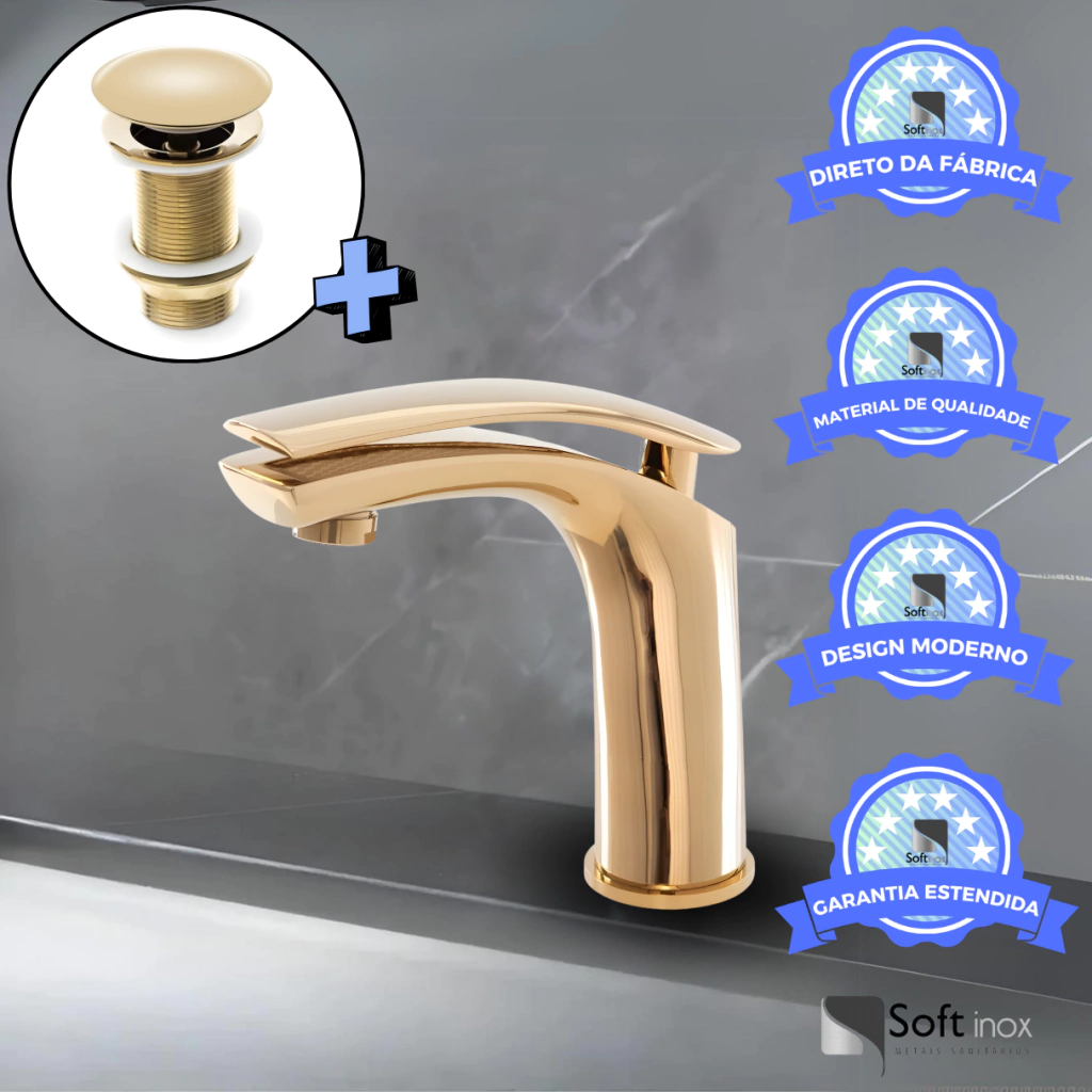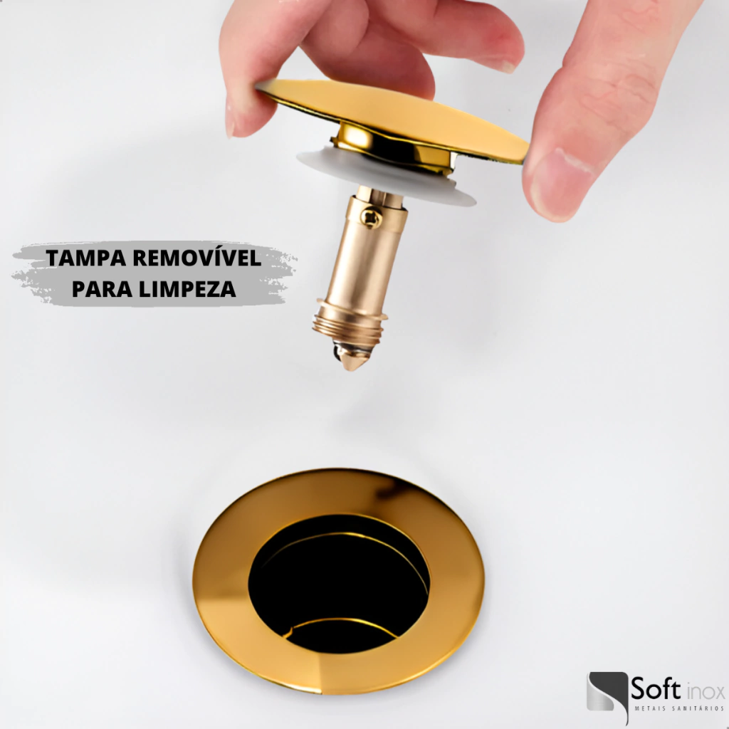 Tags: Torneira Monocomando, Válvula Click Luxo, Dourado, Gold, Lavatório, Banheiro, Bica Baixa, Inox, Sistema Click, Sofisticação, Funcionalidade, Design Elegante, Acabamento Premium, Durabilidade, Fácil Instalação, Praticidade, 1.1/4, Drenagem, Cubas, Pias, Tanque, Metal, Durável, Resistente, Torneira, Torneira Gourmet, Soft Inox, Esmeralda , Torneira Bancada, Click Up.