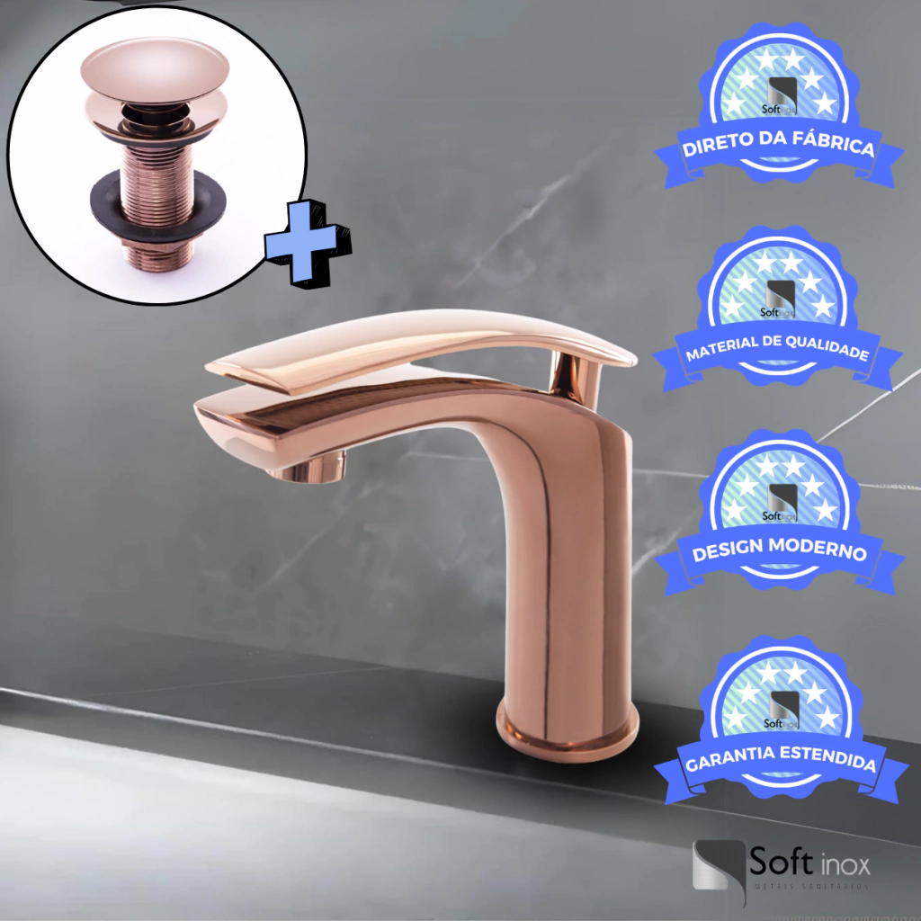 Adicione sofisticação e funcionalidade ao seu banheiro com o Kit de Torneira Monocomando Baixa e Válvula de Escoamento Click Luxo (Rose). Este conjunto combina o design elegante da torneira monocomando com a praticidade da válvula de escoamento, oferecendo uma solução completa para lavabos e banheiros modernos. A torneira possui acabamento em Rose, misturando requinte e durabilidade com o seu cartucho cerâmico de alta qualidade e controle preciso de vazão e temperatura. Já a válvula click em inox Rose proporciona um toque luxuoso e praticidade com seu sistema inteligente de abertura e fechamento.