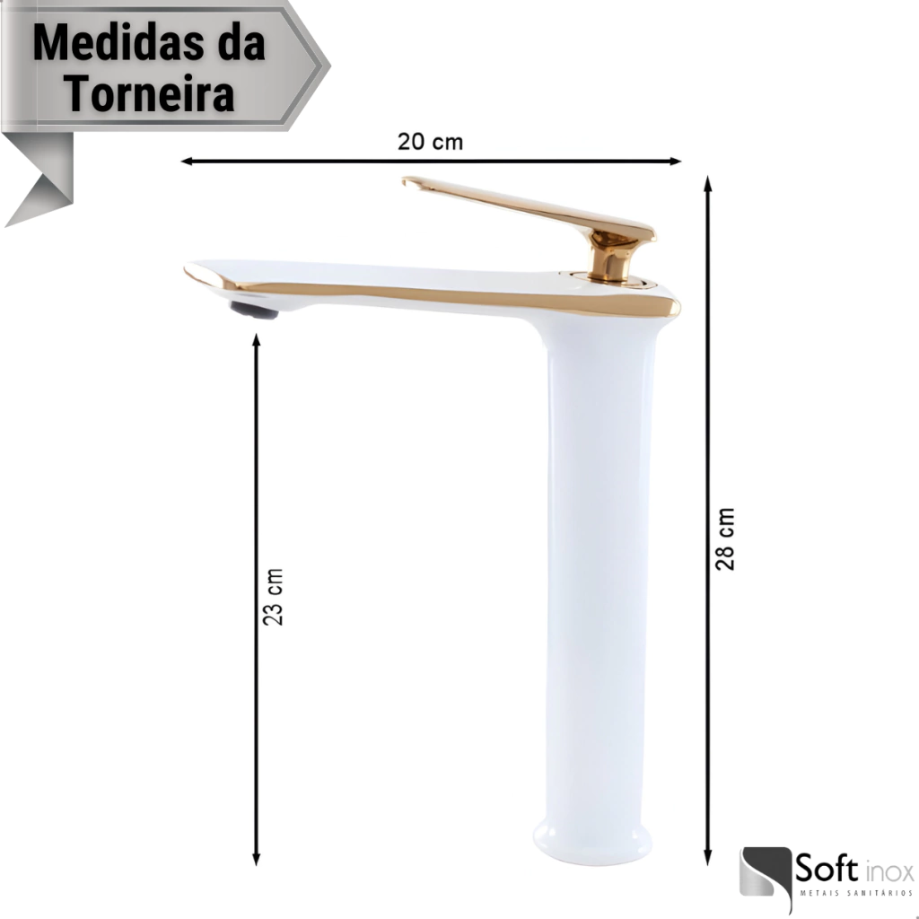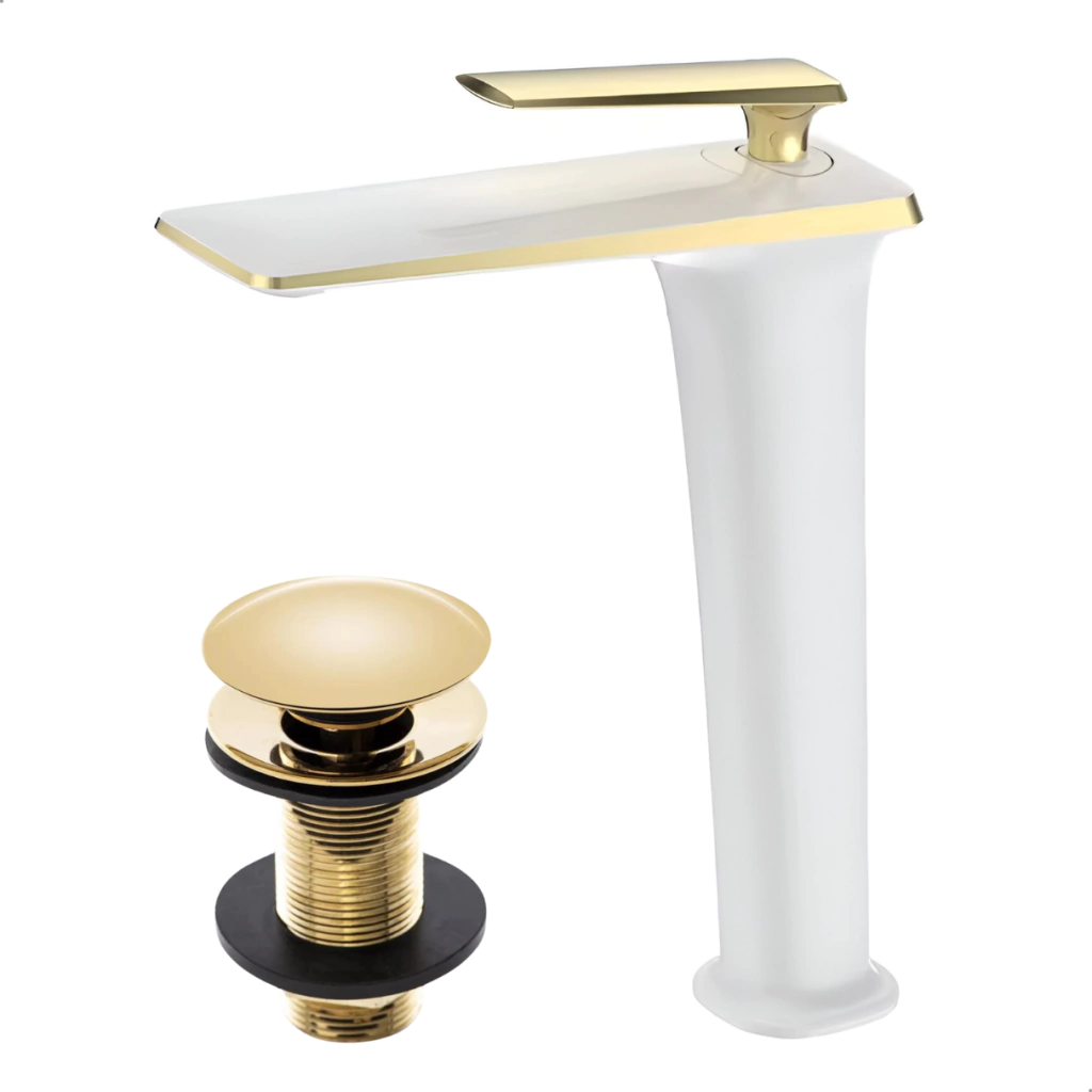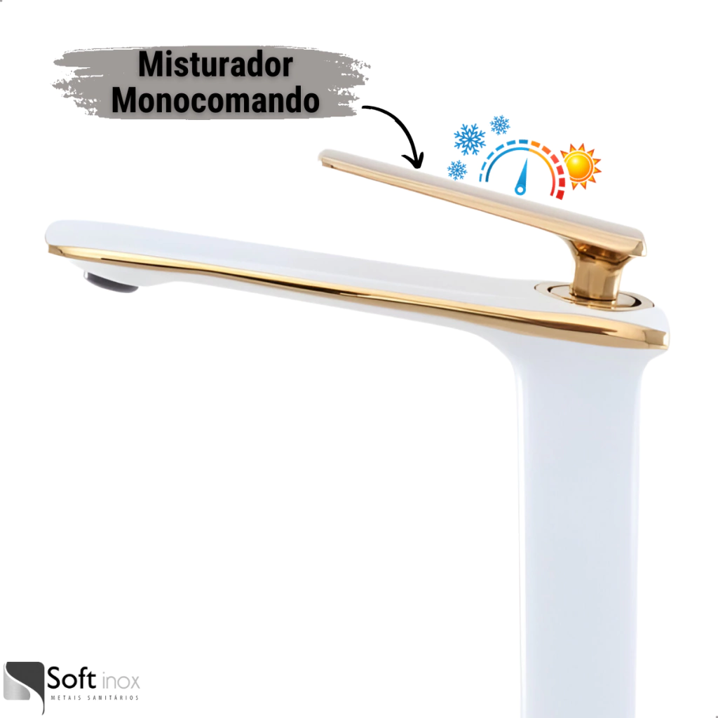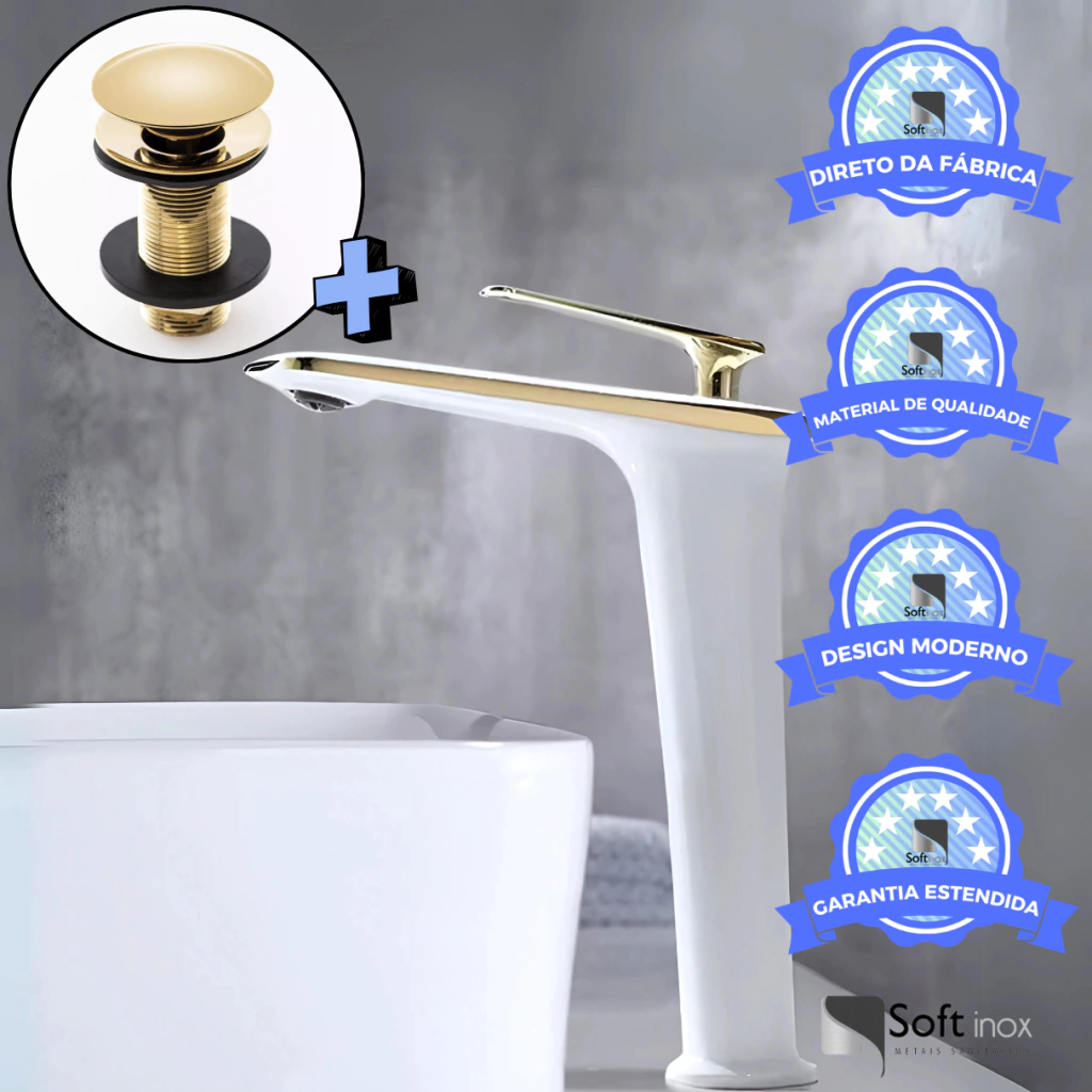 01 Torneira Rubi Monocomando Alta (Branco/Gold)