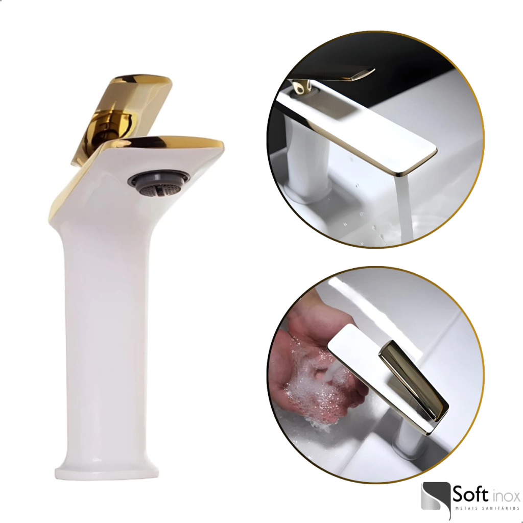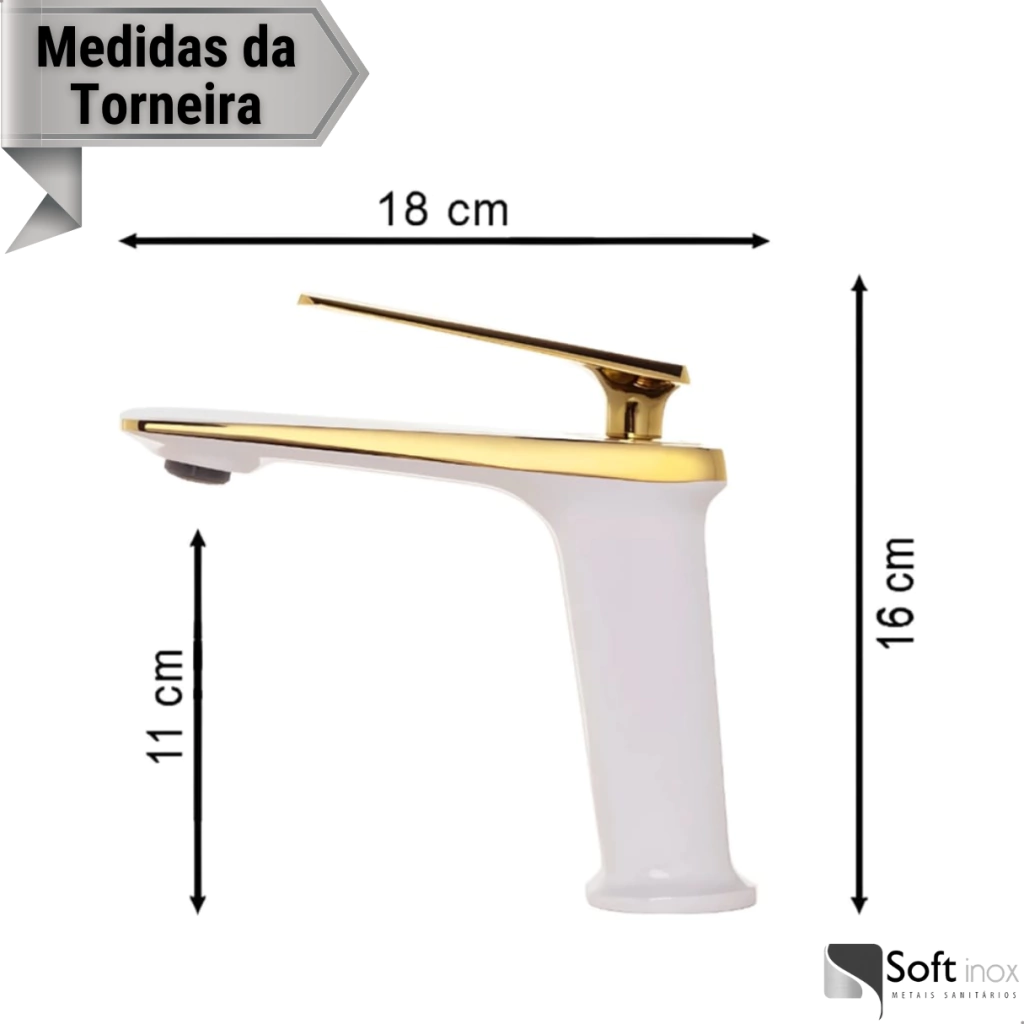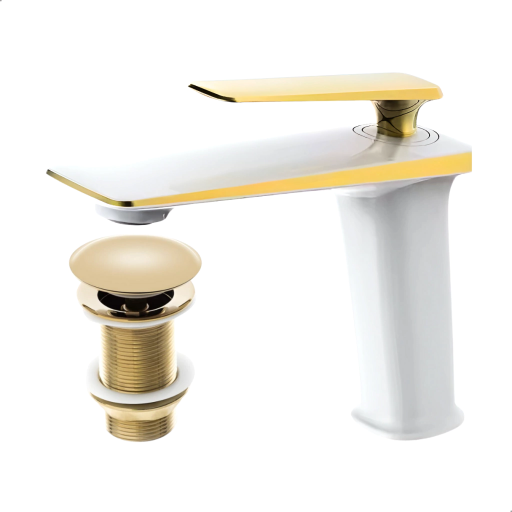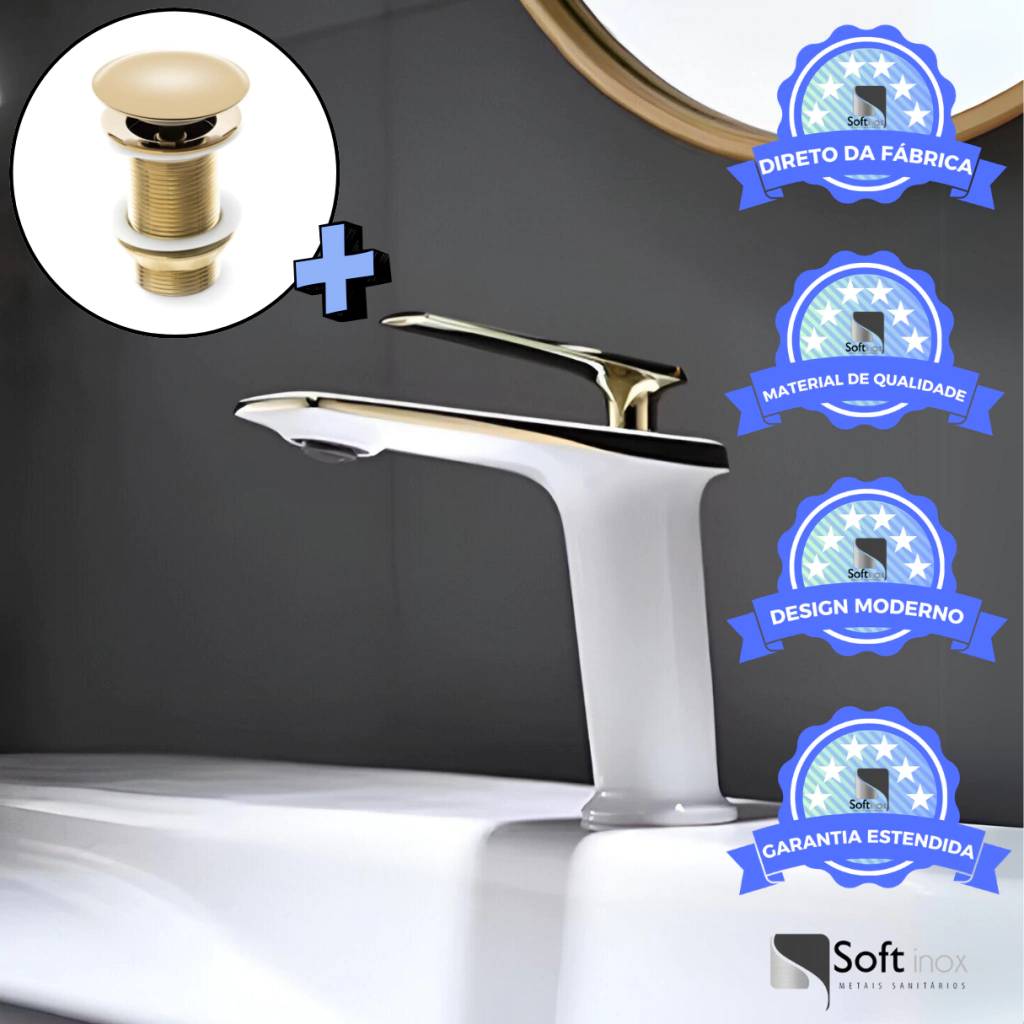 01 Torneira Monocomando Rubi Baixa (Branco/Gold)