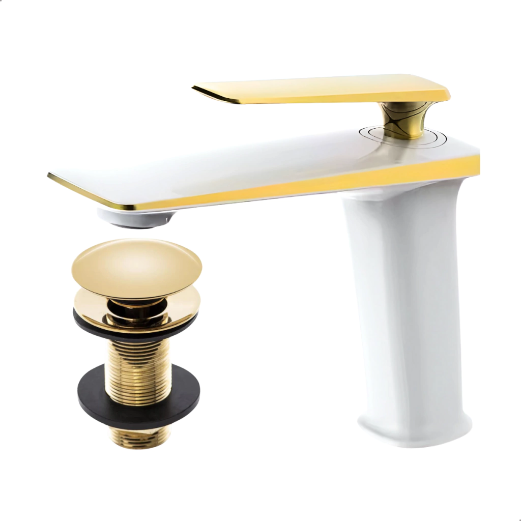 01 Torneira Rubi Monocomando Baixa (Branco/Gold)