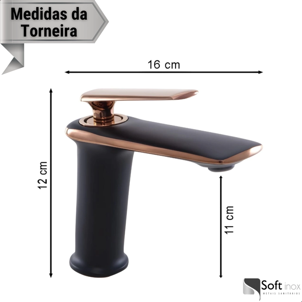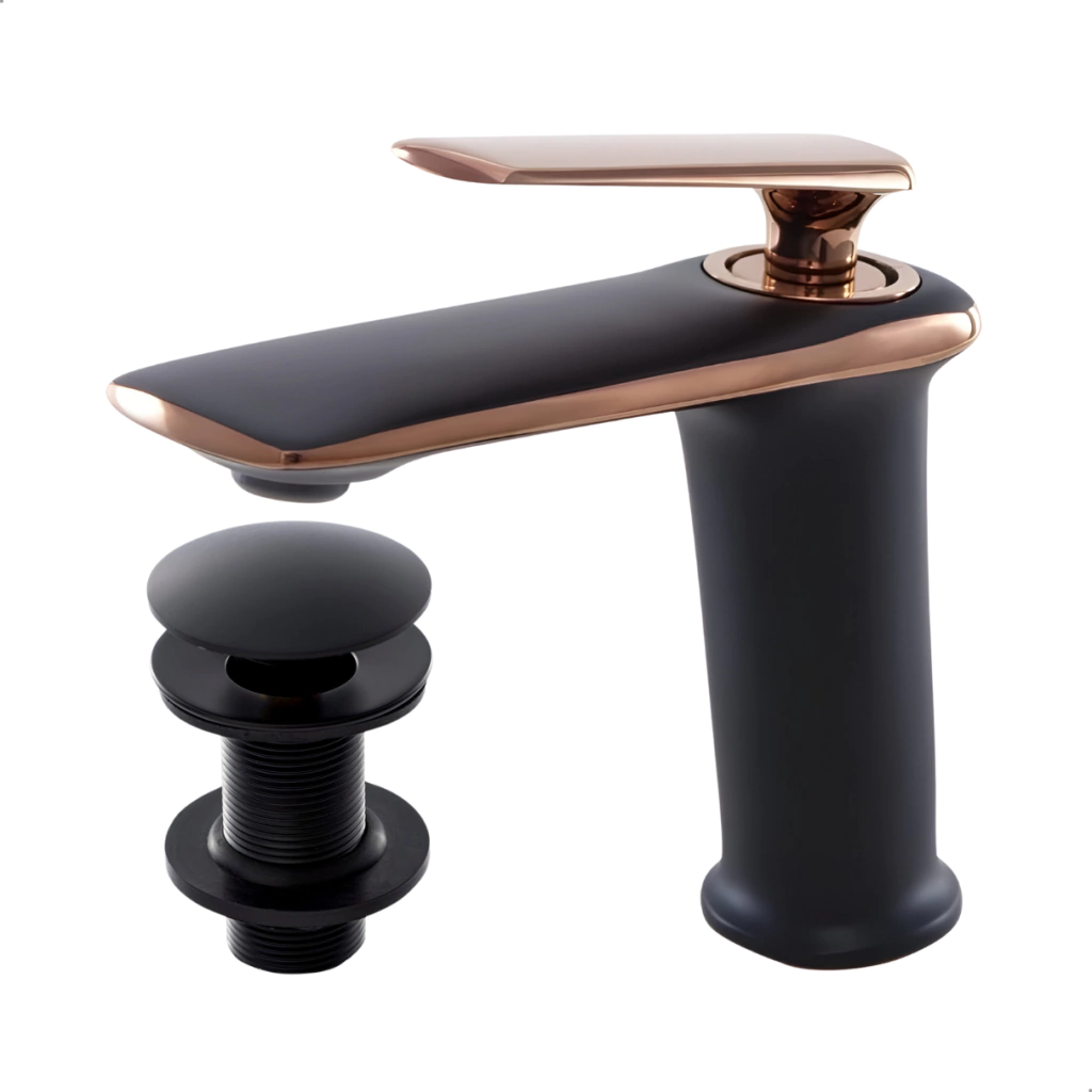 01 Torneira Rubi Monocomando Baixa (Preto/Rose)