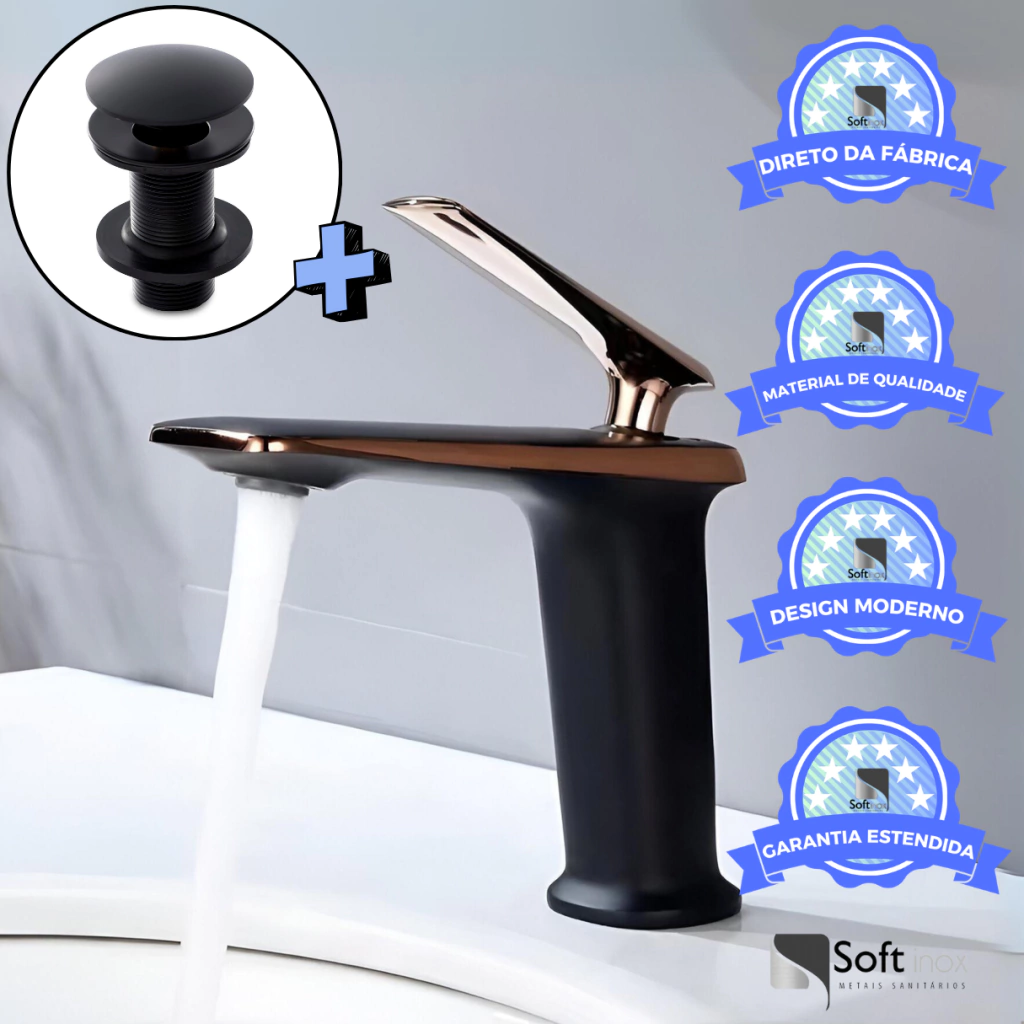 Adicione sofisticação e funcionalidade ao seu banheiro com o Kit de Torneira Monocomando Rubi Baixa e Válvula de Escoamento Click Luxo (Preto/Rose). Este conjunto combina o design elegante da torneira monocomando com a praticidade da válvula de escoamento, oferecendo uma solução completa para lavabos e banheiros modernos. A torneira possui acabamento em preto e rose, misturando requinte e durabilidade com o seu cartucho cerâmico de alta qualidade e controle preciso de vazão e temperatura. Já a válvula click em inox preto proporciona um toque luxuoso e praticidade com seu sistema inteligente de abertura e fechamento.
