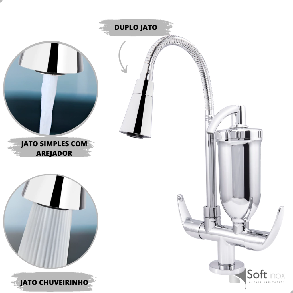 Tags:Torneira, Filtro, Bancada, Cozinha, Cone, Cromado, Duplo Jato, Filtragem, Instalação Fácil, Praticidade.