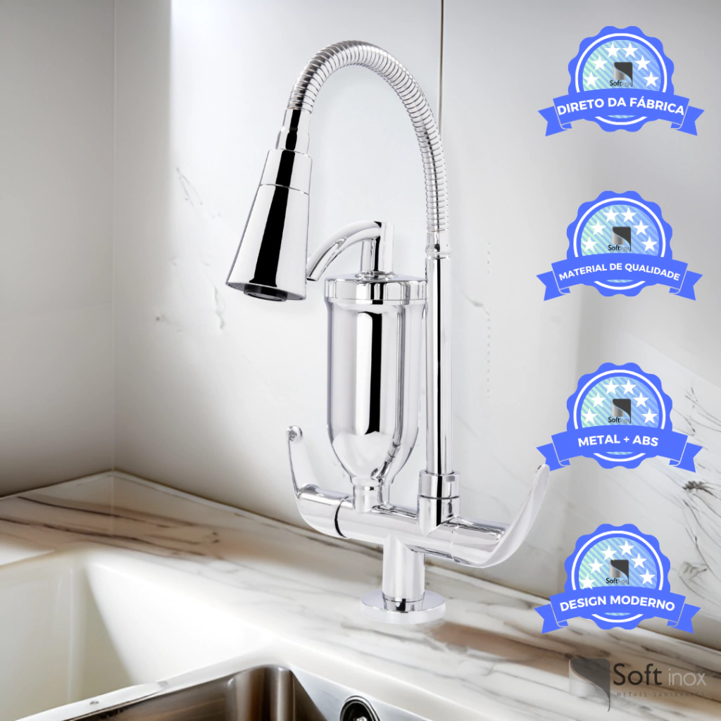 Esta torneira com filtro de bancada oferece praticidade, eficiência e água limpa para sua cozinha, tornando-a uma escolha ideal para seu lar.