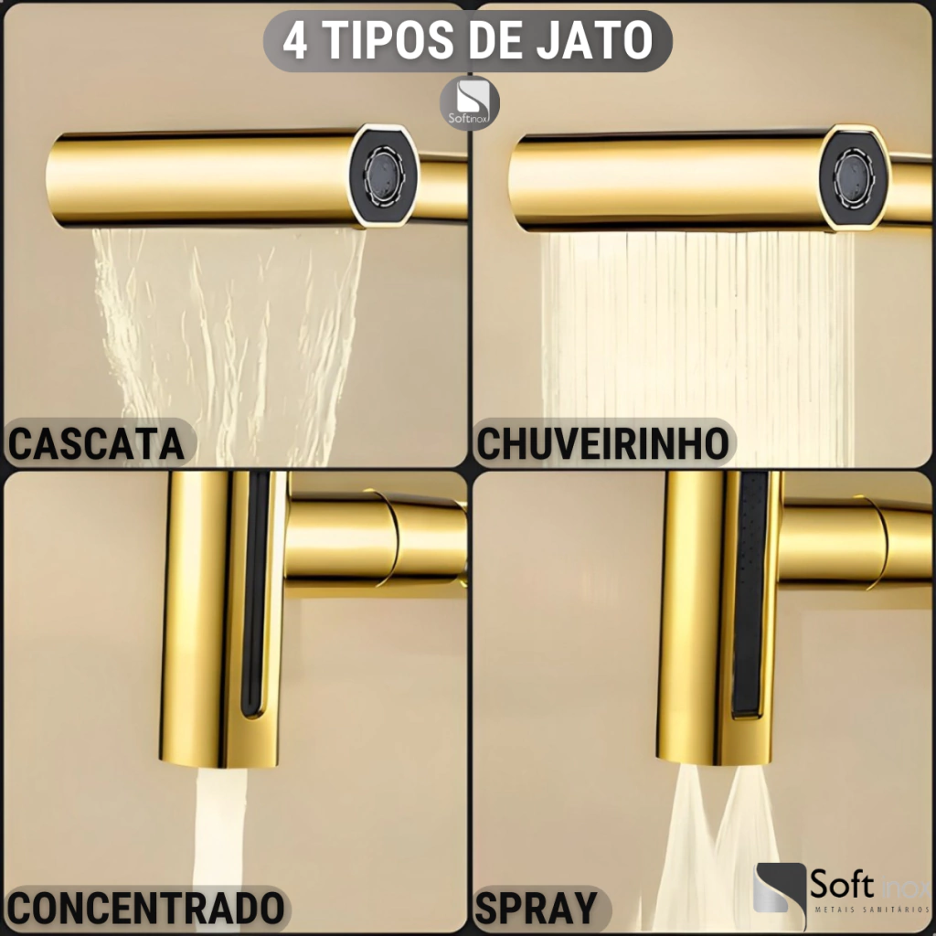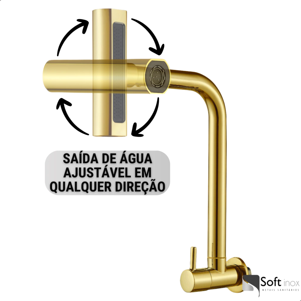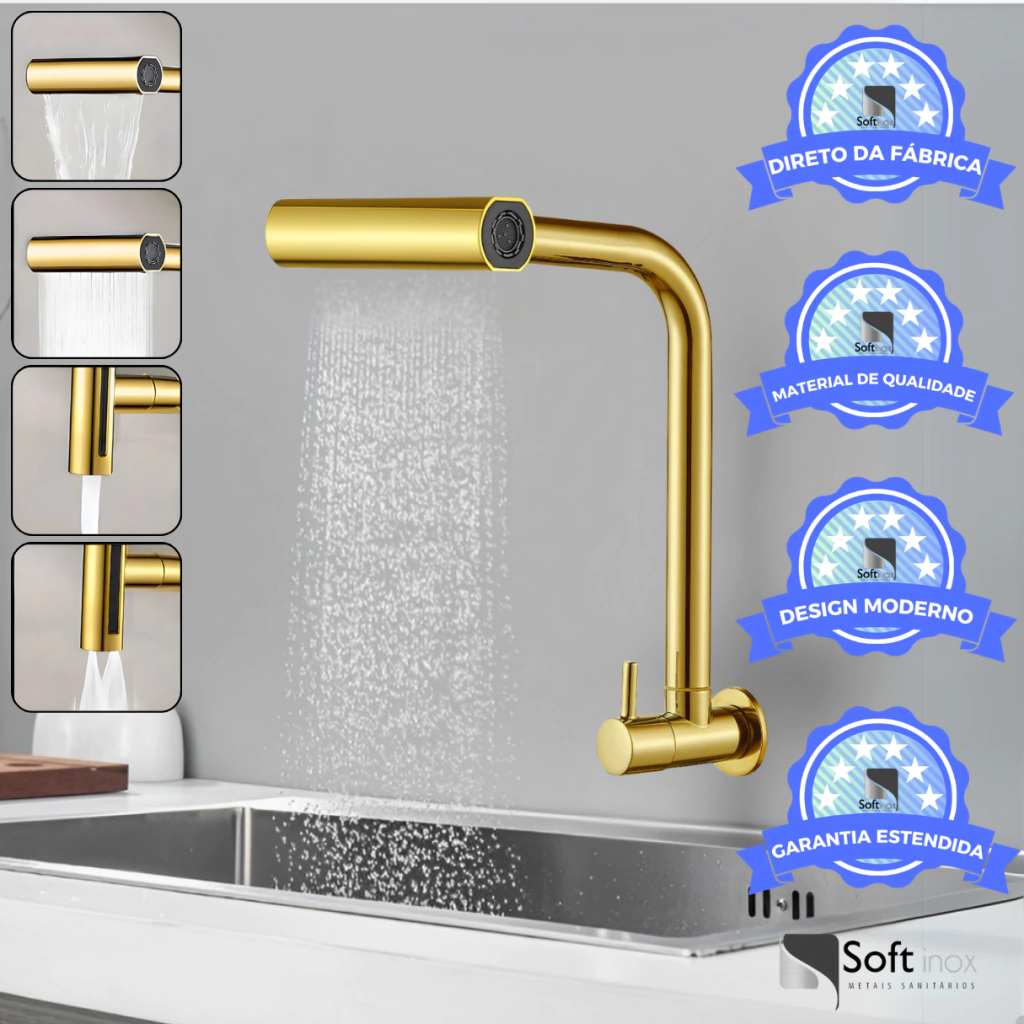 TAGS: Torneira Dourada, Torneira de Parede, Torneira 4 Jatos, Torneira Rotativa, Torneira 360 Graus, Torneira Metal, Praticidade, Durabilidade, Garantia, Design Moderno, Bica Giratória, Torneira Cascata, Torneira Spray, Torneira Chuveirinho, Torneira Concentrada, Acionamento 1/4 de Volta, Torneira Gourmet, Material de qualidade, Torneira Para Cozinha, Soft Inox, Água Fria, Torneira Tubarão Martelo, Economia de Água, Instalação Fácil, Cartucho Cerâmico, Luxo.