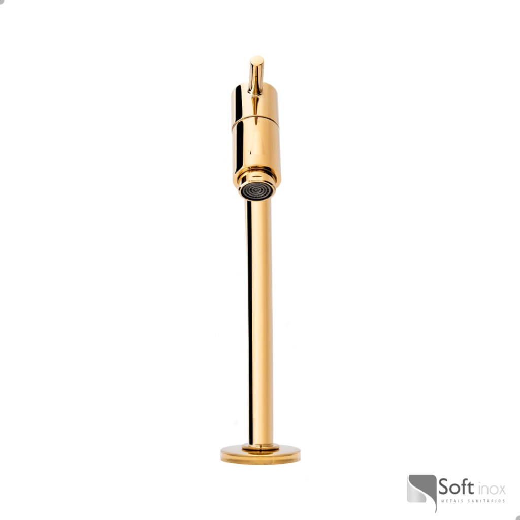 TAGS: Torneira, Lavatório, Bica Baixa, Redonda, Gold, Banheiro, Acabamento Dourado, Design Moderno, Alta Qualidade