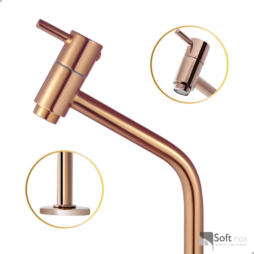 TAGS: Torneira, Lavatório, Bica Baixa, Redonda, Rose, Banheiro, Acabamento Dourado, Design Moderno, Alta Qualidade
