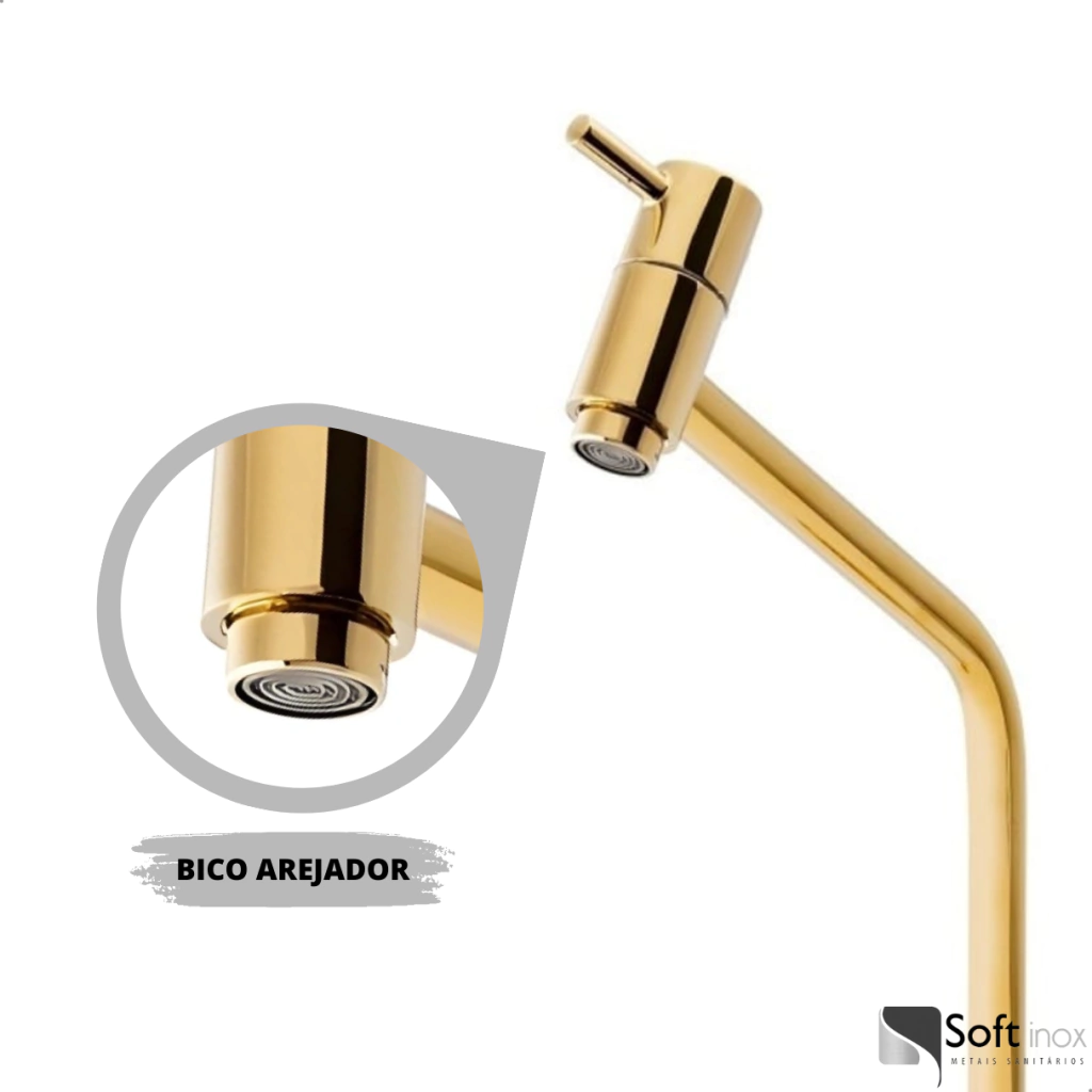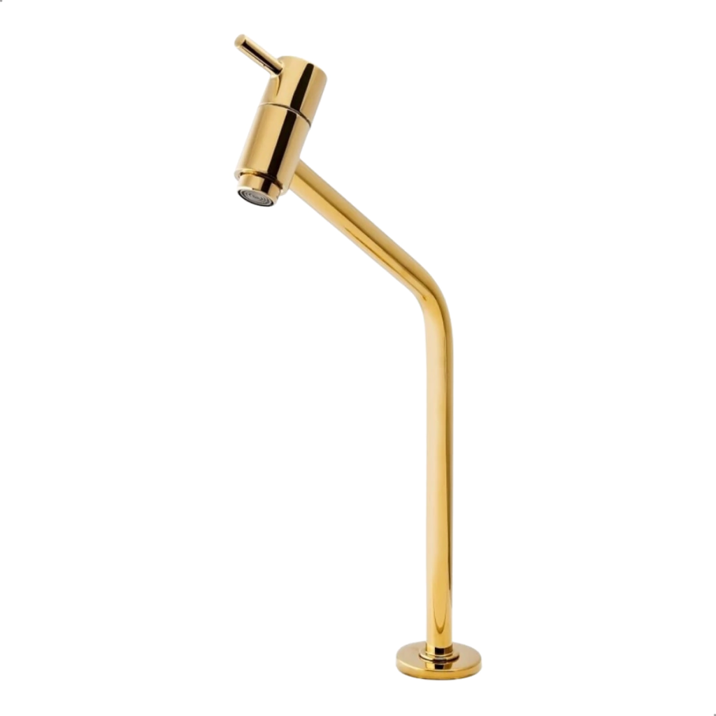 Tags: Torneira, Lavatório, Bica Alta, 1/4 de Volta, Dourado, Gold, Sofisticação, Durabilidade, Economia de Água.