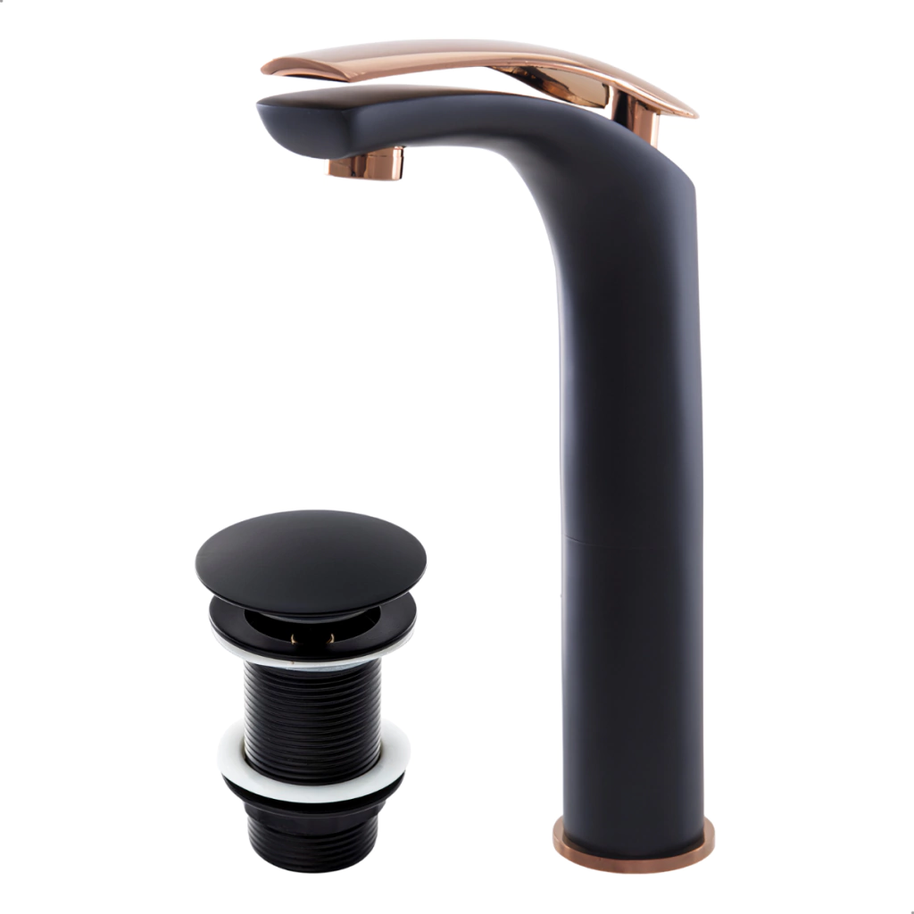 Adicione sofisticação e funcionalidade ao seu banheiro com o Kit de Torneira Monocomando Alta e Válvula de Escoamento Click Luxo (Preto/Rose). Este conjunto combina o design elegante da torneira monocomando com a praticidade da válvula de escoamento, oferecendo uma solução completa para lavabos e banheiros modernos. A torneira possui acabamento em preto e rose, misturando requinte e durabilidade com o seu cartucho cerâmico de alta qualidade e controle preciso de vazão e temperatura. Já a válvula click em inox preto proporciona um toque luxuoso e praticidade com seu sistema inteligente de abertura e fechamento.