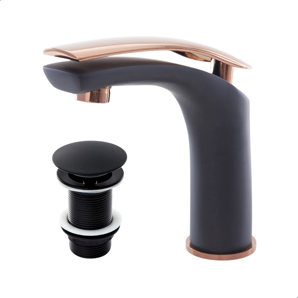 01 Torneira Monocomando Baixa(Preto/Rose)