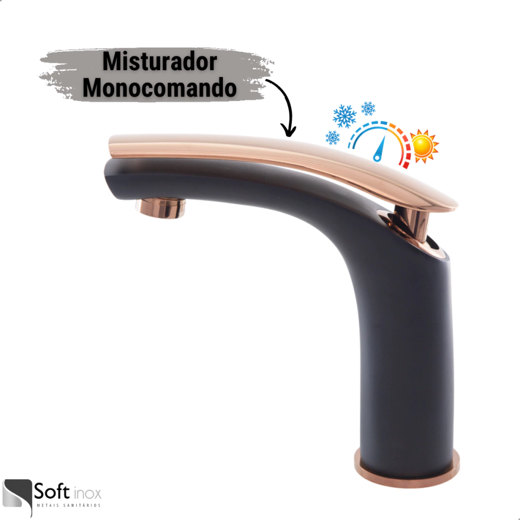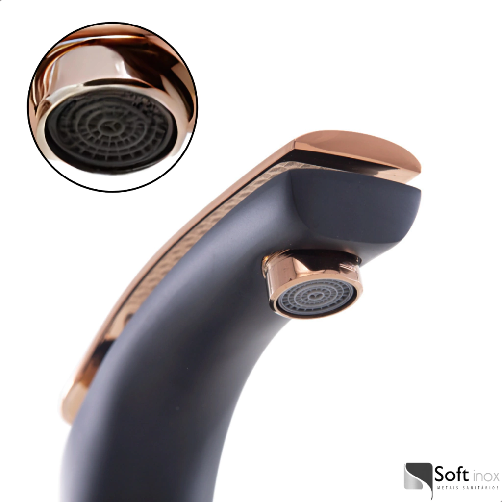 01 Torneira Monocomando Baixa (Preto/Rose)
