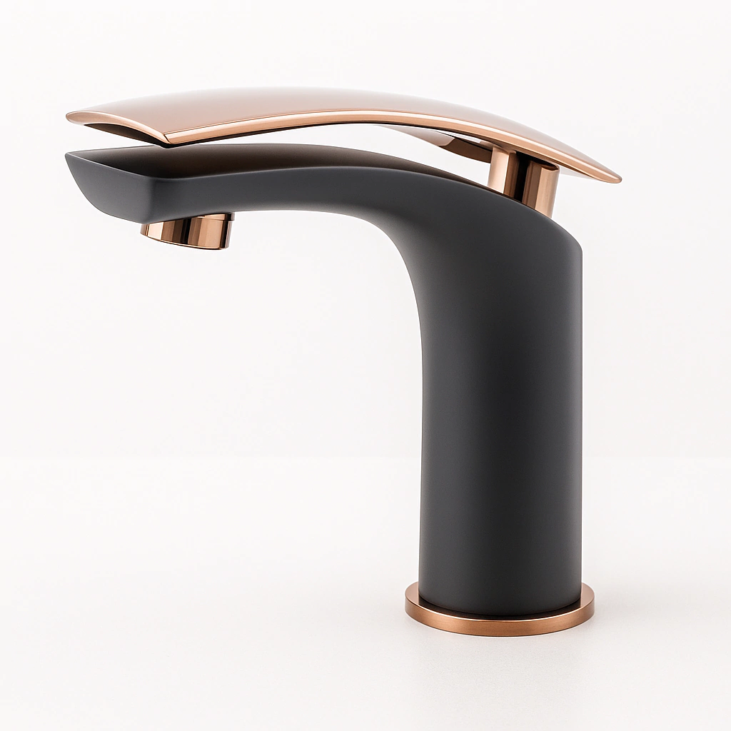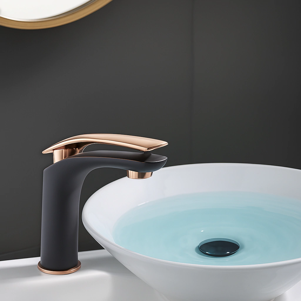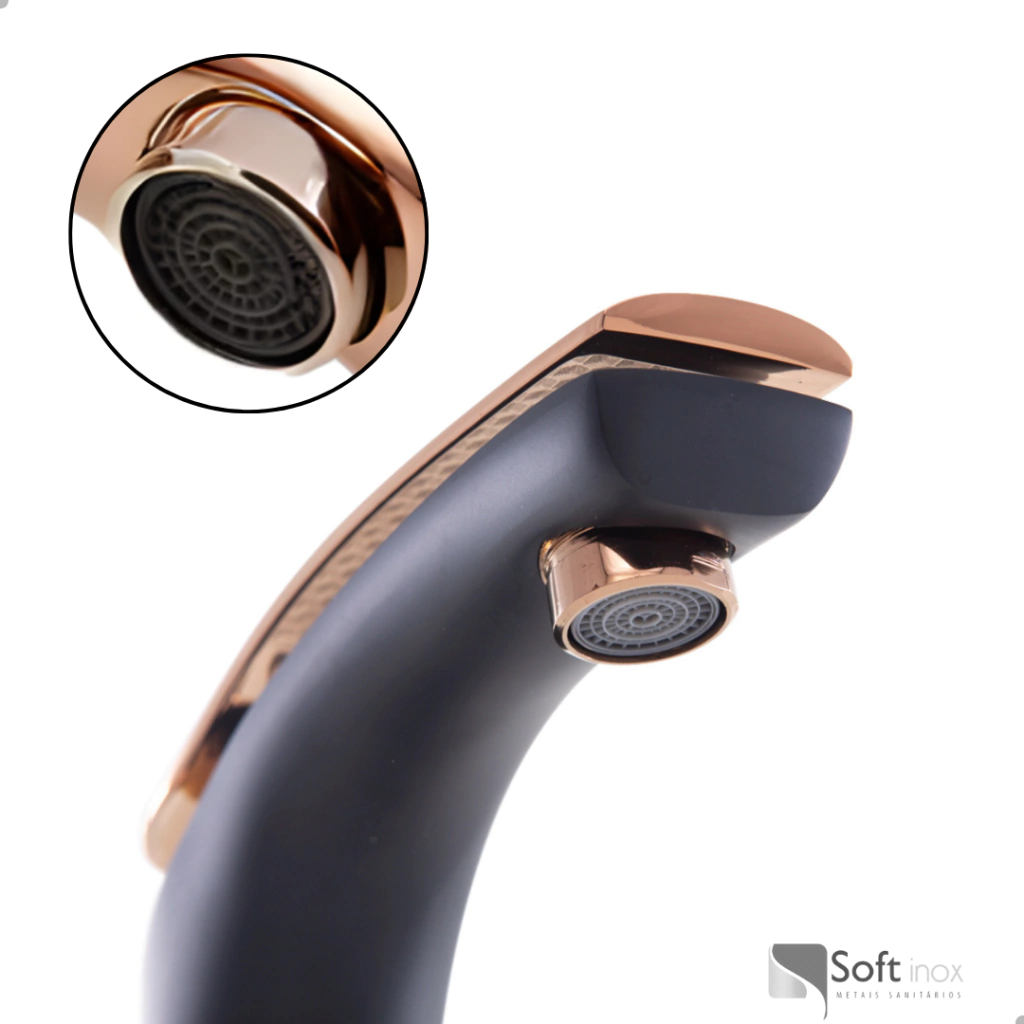 A Torneira Monocomando Baixa para Banheiro (Rose com Preto) é uma torneira metálica perfeita para banheiros e lavabos que buscam requinte e sofisticação. Possui acabamento na cor Rosé com Preto e um misturador monocomando, que pode ser conectado à água quente e fria, para controle de vazão e temperatura. Para quem possui apenas água fria, é possível adaptá-la de maneira simples, com a utilização de T Hidráulico e Niples disponíveis em nossa loja.