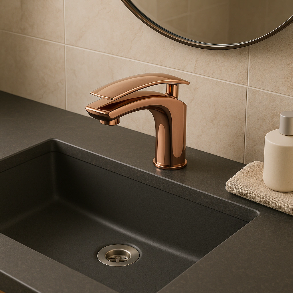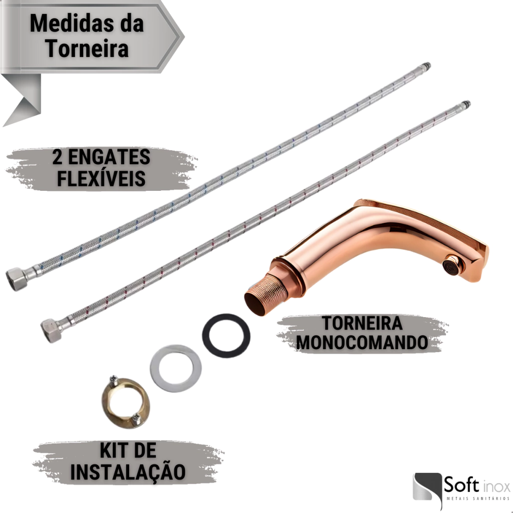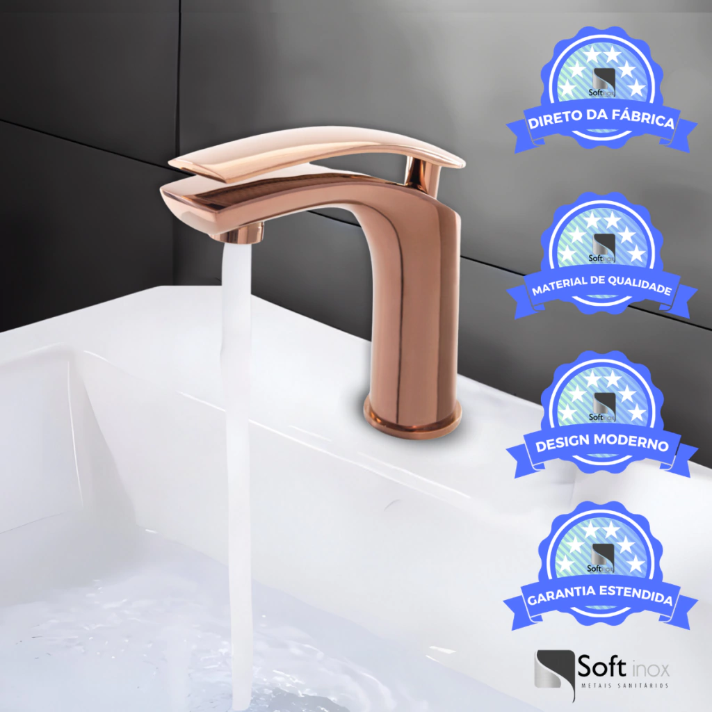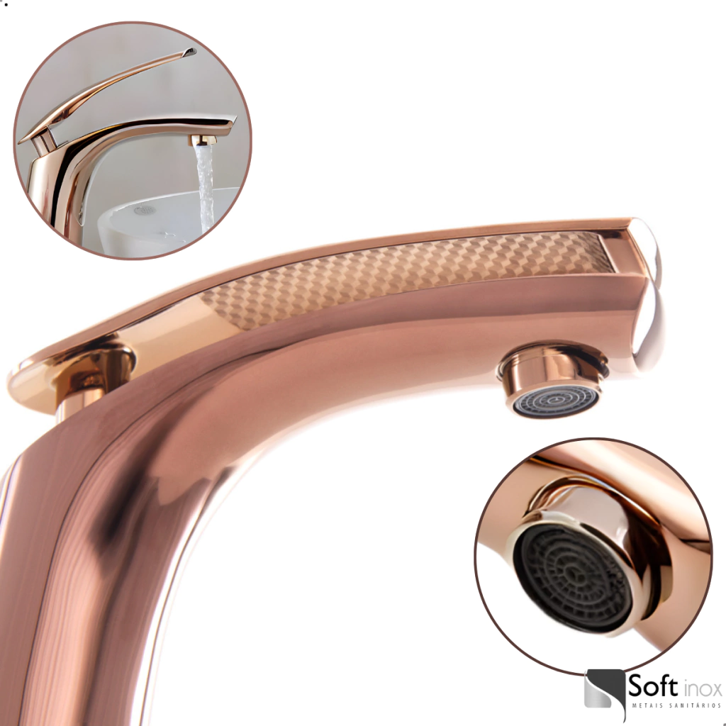 A Torneira Monocomando Baixa para Banheiro (Fuji Rosé Gold) é uma torneira metálica perfeita para banheiros e lavabos que buscam requinte e sofisticação. Possui acabamento na cor Rosé Gold e um misturador monocomando, que pode ser conectado à água quente e fria, para controle de vazão e temperatura. Para quem possui apenas água fria, é possível adaptá-la de maneira simples, com a utilização de T Hidráulico e Niples disponíveis em nossa loja.