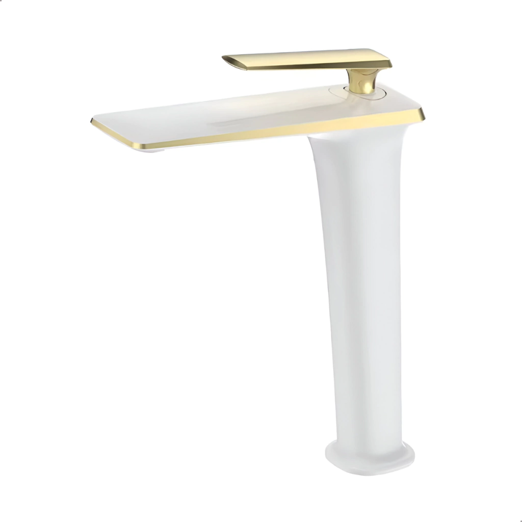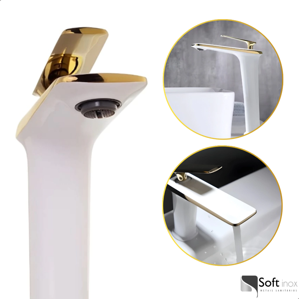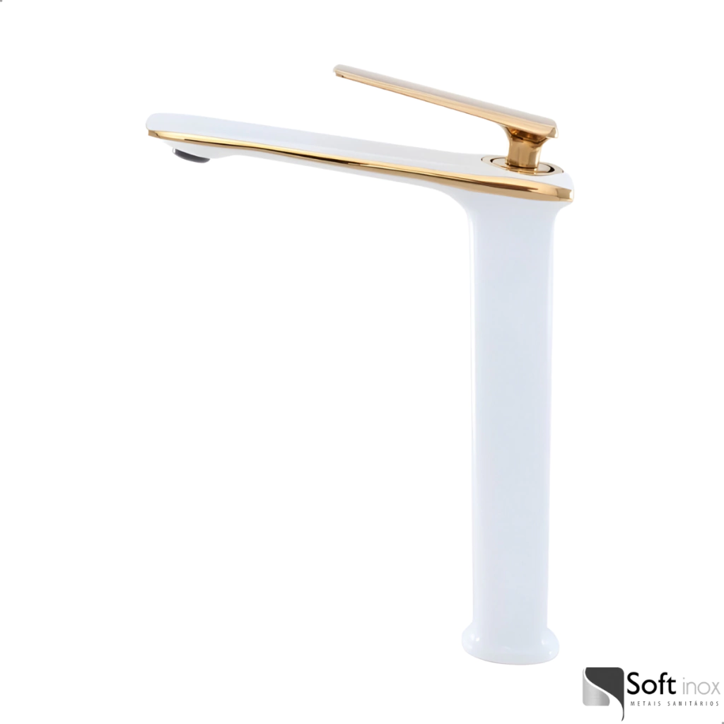 Tags: Torneira, Monocomando, Rubi, Alta, Branco, Dourado, Luxo, Lavatório, Sofisticação, Metal, Arejador.