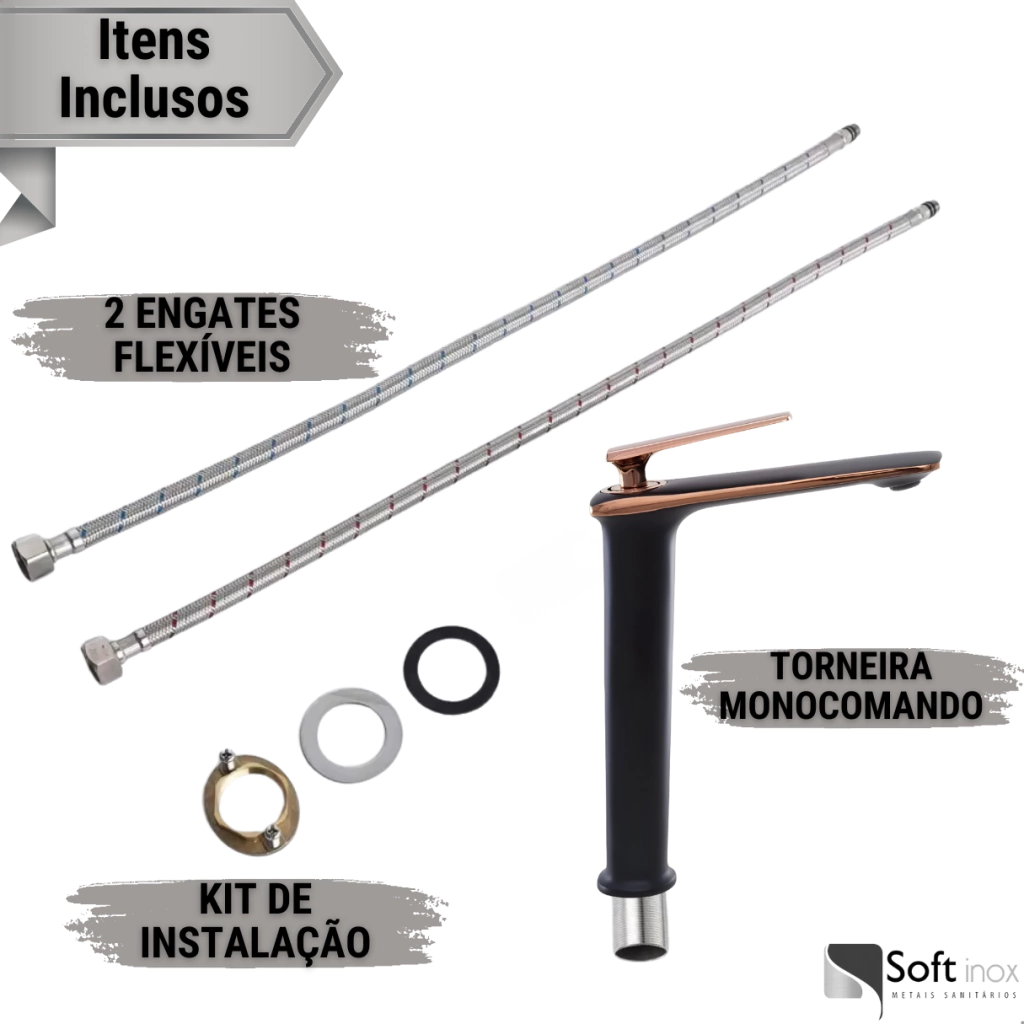 Tags: Torneira, Monocomando, Lavatório, Banheiro, Bica Alta, Preto, Rose, Sofisticação, Metal.