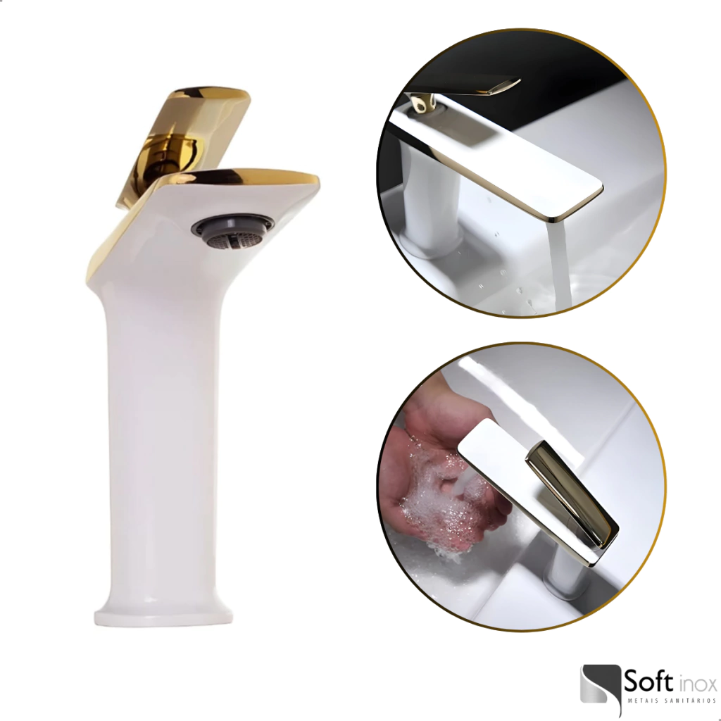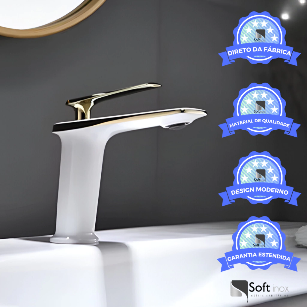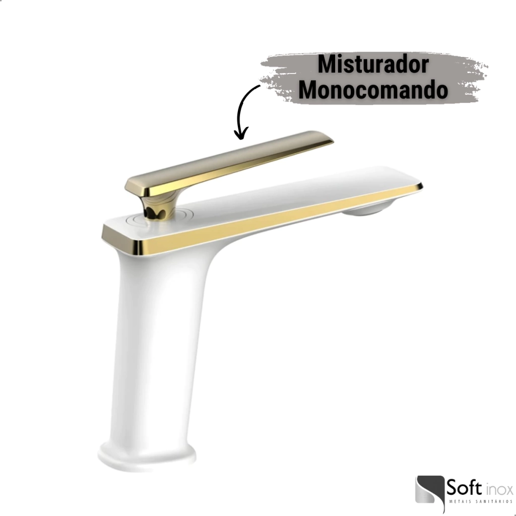 Tags: Torneira, Monocomando, Rubi, Baixa, Branco, Dourado, Lavatório, Sofisticação, Metal, Bica Baixa.