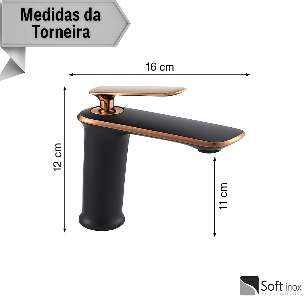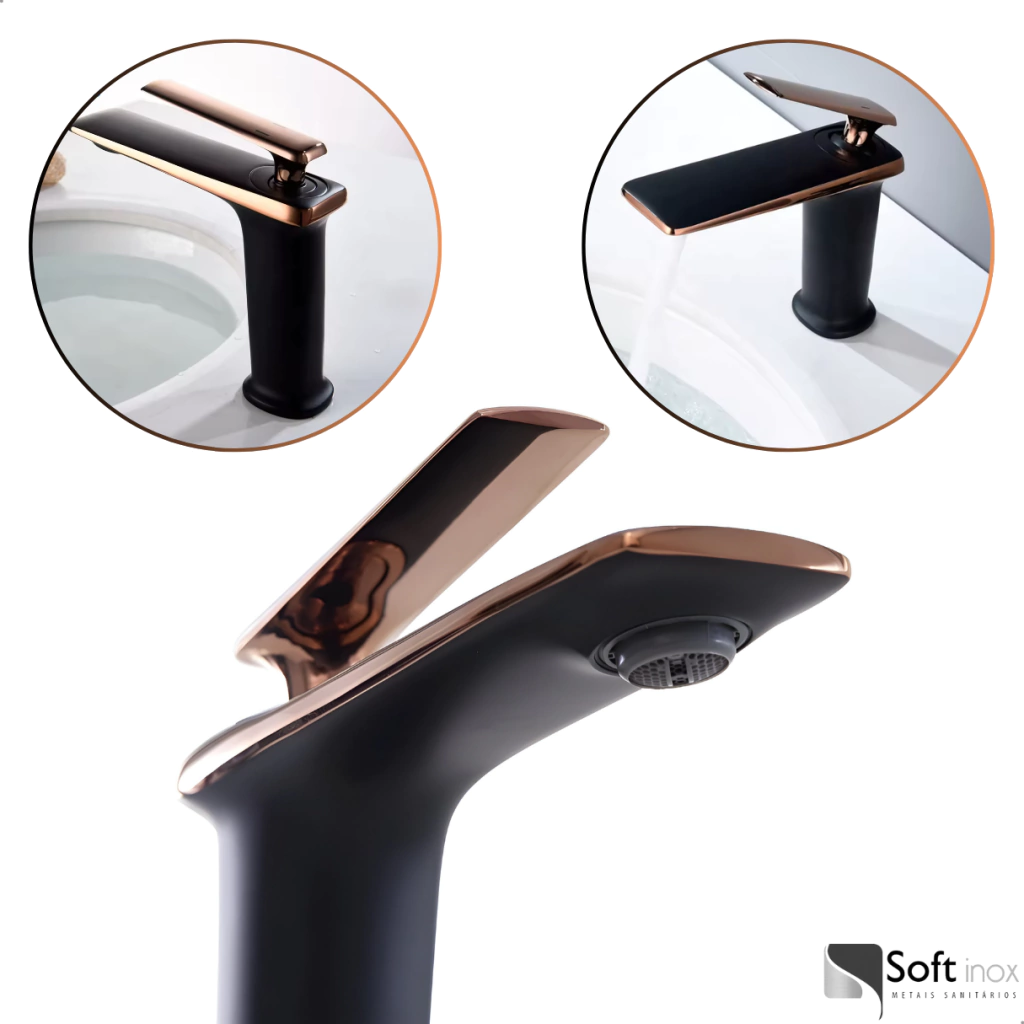 A Torneira Monocomando Rubi Baixa para Banheiro (Preto/Rose) é uma escolha elegante e sofisticada para banheiros e lavabos que desejam adicionar um toque de requinte ao ambiente. Com um acabamento em preto e rose, esta torneira metálica apresenta um misturador monocomando que permite o controle preciso da vazão e temperatura da água. Seu design de bica baixa é ideal para lavatórios, proporcionando praticidade e elegância.